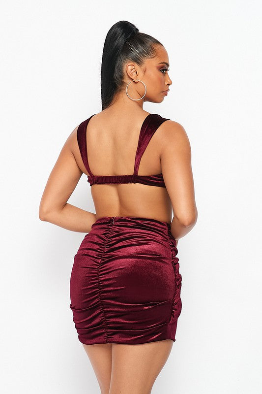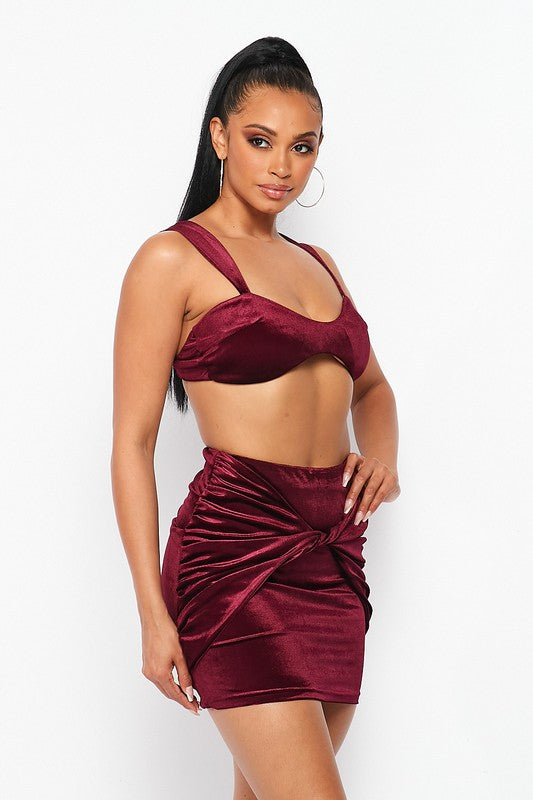 Experience haute glamour with this burgundy velvet skirt set from Haute Glam Boutique. The soft, sexy fabric flows gracefully around your curves for an ultra-feminine look that can take you from day to night in style. Make an impact and stand out from the crowd with this bold and daring look.