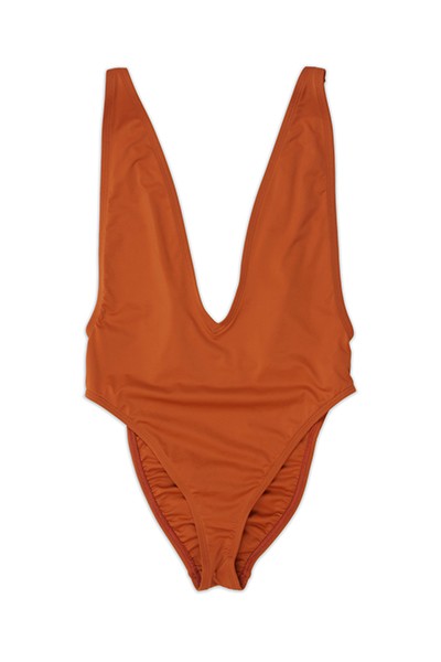 Unleash your wild side. Show off your curves with this bold, sexy High Cut Low V-Neck One Piece Swimsuit in Rust - you won't be able to resist the urge to take a risk! Dive in and explore uncharted waters in confident style.