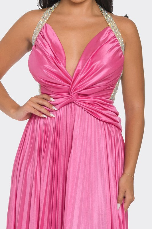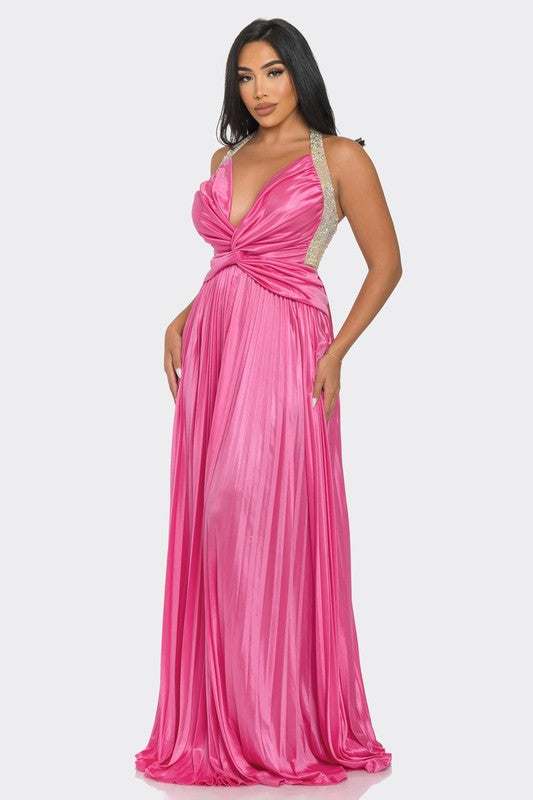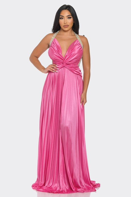 Turn heads in this Pink Rhinestone Pleated Maxi Dress! Sparkling rhinestones and playful pleats make this dress a showstopper. Perfect for any special occasion, this maxi dress is sure to make you stand out in a crowd. Embrace your fun and flirty side with this must-have piece!