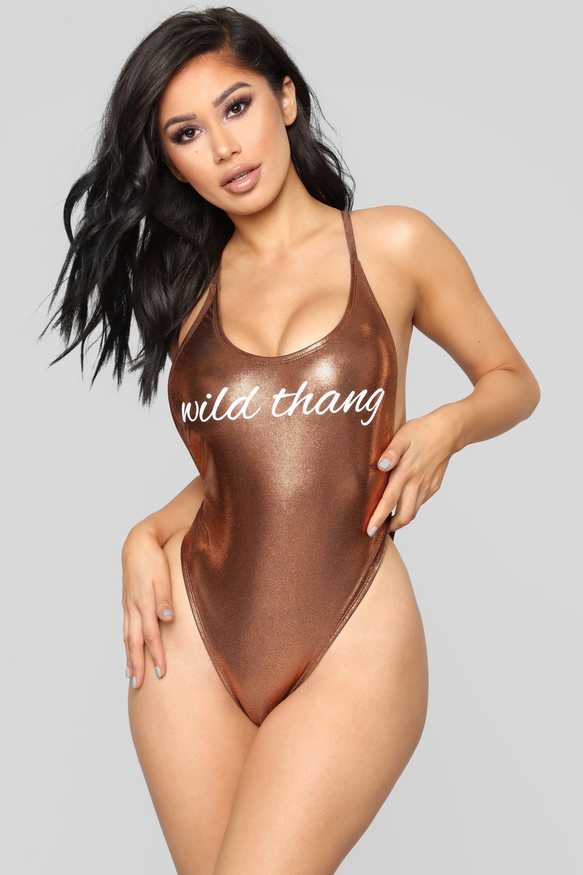 Jump into the Rust Wild Thang High Cut One Piece from Haute Glam Boutique and show the world who's boss. Slip into this sexy metallic swimsuit and make a statement you won't forget! Dare to be bold and look sizzling hot.